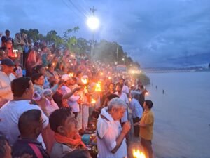 श्री राधा शरणम् सेवा समिति के तत्वाधान में जय बालाजी कीर्तन मंडल के द्वारा मां शारदा आरती का समापन सावन के अंतिम सोमवार को हो गया। आरती में शामिल होने दूर दराज क्षेत्रों से भी लोग आए। आरती में मुख्य जजमान के रूप में कैनाल विभाग के sdo प्रशांत वर्मा, विद्युत विभाग के je नरेंद्र श्रीवास्तव, बनबसा ग्राम सभा के नवनिर्वाचित ग्राम प्रधान राकेश चंद, ओम प्रकाश अग्रवाल खटीमा से शामिल हुए। आरती में शामिल भक्तों ने श्री राधा शरणम् समिति से आग्रह किया कि इस आरती को सिर्फ सावन में ही न किया जाए उसके अलावा प्रत्येक माह के सोमवार को किया जाए। श्री राधा शरणम् सेवा समिति के संस्थापक एवं भजन गायक कपिल भार्गव ने कहा कि हम सभी देवतुल्य भक्तों के आभारी है जो इस आरती को सफल बनाने में हमें सहयोग करते है और हम समस्त क्षेत्रवासियों की इच्छा है कि मां शारदा और उनकी आरती से हमारे क्षेत्र को जाना जाए और धार्मिक पर्यटन बड़े जिससे लोगों में धार्मिक आस्था के साथ साथ रोजगार के अवसर भी बड़े। श्री राधा शरणम् सेवा समिति के द्वारा पूर्व में भी नशा मुक्ति केंद्रों में जाकर हनुमान चालीसा पाठ का आयोजन कर लोगों को नशा छोड़कर धर्म के मार्ग पर चलने के लिए प्रेरित किया गया। आरती में कैनाल विभाग के सहित थाना बनबसा के थानाध्यक्ष सुरेंद्र कोरंगा एवं आरती में मौजूद रहने वाले पुलिस कर्मी दीनू कोली,गोताखोर गोस्वामी को भी आभार स्वरूप शाल उड़ाकर सम्मानित किया गया। बनबसा व्यापार मंडल के महामंत्री अभिषेक गोयल के अलावा समिति के शिवनारायण साहू, मनोज मित्तल,राजकुमार पारीक,नक्षत्र पाण्डेय,चंद्रशेखर भट्ट,नीरज मुरारी, मंदीप प्रजापति,अखिल प्रजापति,केसर सिंह खोलिया आदि ने सहयोग प्रदान किया।