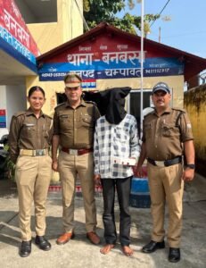 गत शुक्रवार को थानाध्यक्ष सुरेंद्र सिंह कोरंगा के नेतृत्व में चेकिंग के दौरान पुलिस ने बनबसा क्षेत्रान्तर्गत राम चन्द्र पुत्र श्यामा, निवासी थाना जहांनाबाद, जिला पीलीभीत, उम्र 38 वर्ष, के कब्जे से 7.19 ग्राम अवैध हेरोइन बरामद कर गिरफ्तार किया गया।पुलिस टीम थानाध्यक्ष सुरेंद्र सिंह कोरंगा, शारदा बैराज चौकी प्रभारी देवेंद्र सिंह बिष्ट, हेड कांस्टेबल एजाज अहमद, दिनेश प्रसाद शामिल थे l