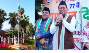 देहरादून 26 जनवरी ।77वें गणतंत्र दिवस के अवसर पर मुख्यमंत्री पुष्कर सिंह धामी एवं भाजपा के प्रदेश अध्यक्ष महेन्द्र भट्ट ने बलवीर रोड स्थित भाजपा के प्रदेश कार्यालय में राष्ट्रीय ध्वज फहराया। इस अवसर पर उन्होंने देश के संविधान, लोकतांत्रिक मूल्यों और राष्ट्र की एकता एवं अखंडता के प्रति समर्पण का संदेश दिया।
