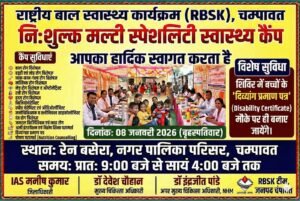 *8 जनवरी को नगर पालिका परिसर में बच्चों हेतु निःशुल्क मल्टी स्पेशलिटी स्वास्थ्य शिविर*
