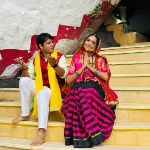 फोटो_ बाराही धाम में मां बाराही पर कुमाऊनी भजन शूटिंग का एक नजारा, जिसमें नायक नायिका की शानदार भजन मुद्रा।