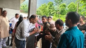 मुख्यमंत्री श्री पुष्कर सिंह धामी के निर्देश पर सीमावर्ती एवं दूरस्थ क्षेत्रों की समस्याओं को जमीनी स्तर पर जानने और उनके त्वरित समाधान हेतु जिलाधिकारी चम्पावत श्री मनीष कुमार लगातार गाँव-गाँव का भ्रमण कर रहे हैं। इसी कड़ी में शनिवार को वे मंच क्षेत्र के सबसे दूरस्थ गाँव बकोड़ा पहुँचे और वहाँ की वास्तविक समस्याओं का प्रत्यक्ष अवलोकन किया।